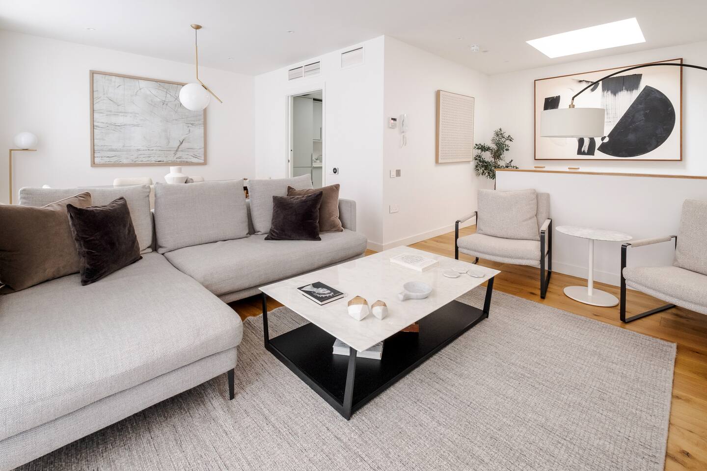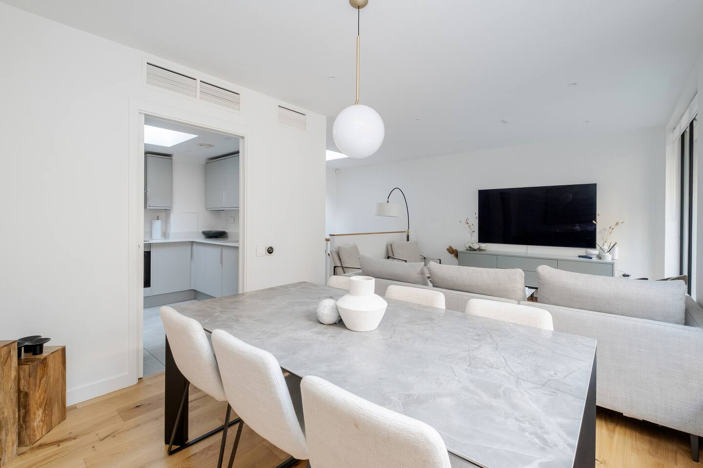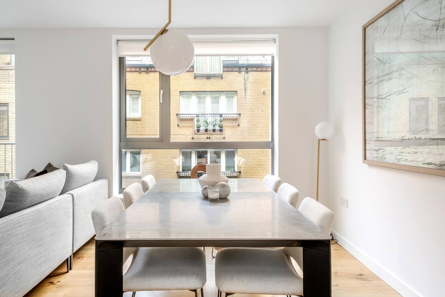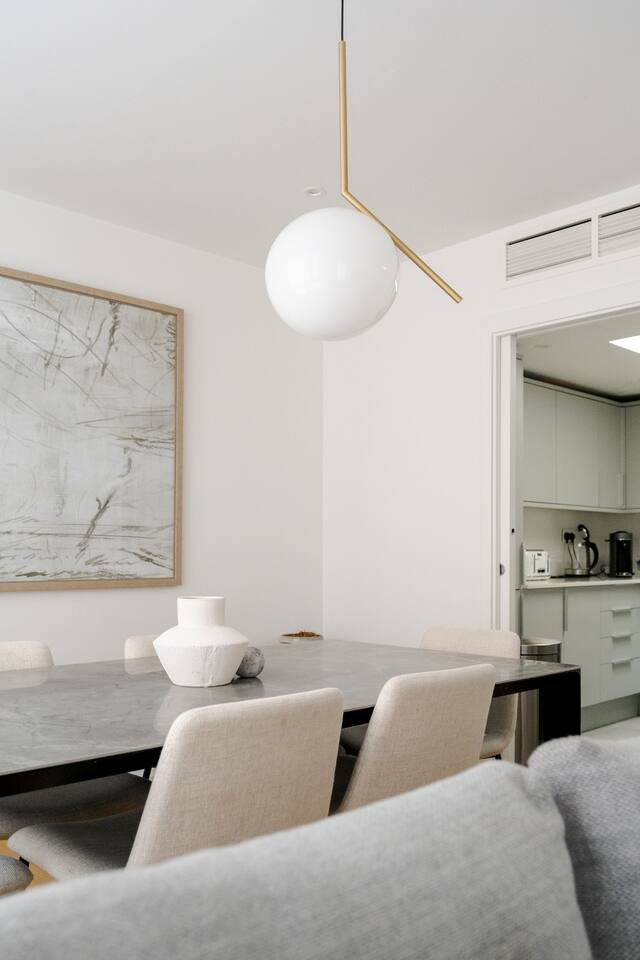Sip your morning coffee as sunlight filters through tall townhouse windows and the quiet hum of London begins beyond the glass. After a day exploring nearby Mayfair and Buckingham Palace, return to unwind in your serene retreat where comfort and calm meet classic city charm. Every space is designed so you can slow down, settle in, and feel truly at home. Sleeping arrangements Across four thoughtfully arranged floors, you’ll find three bedrooms designed for restful nights. Two rooms feature Super King-size beds and the third a King-size bed, each with Egyptian cotton linens, wardrobes, and air conditioning. The master bedroom includes an ensuite bathroom with a walk-in shower, while two additional bathrooms—one with a walk-in shower and another with a bathtub and shower combination—offer convenience for every guest. Living and relaxation Gather in the open-plan living area where a soft couch faces a 75-inch HDTV equipped with Amazon Prime Video, Disney+, Netflix, and premium cable. Enjoy music through the sound system or sink into a book from the curated collection. The marble dining table comfortably seats six, perfect for shared meals and easy conversation. Kitchen and dining The fully equipped kitchen makes cooking a pleasure, with an oven, electric stove, refrigerator, dishwasher, and microwave. You’ll also find a drip coffee maker, espresso machine, French press, and Nespresso to start your mornings just the way you like. Essentials such as cookware, dishes, and utensils are provided for simple meal prep. Fitness and wellness A gym located in the building includes free weights, a stationary bike, treadmill, and yoga mat. After your workout, step out to the private patio or balcony for a breath of fresh air or a quiet cup of tea. Family-friendly touches Families will find thoughtful conveniences throughout the home. A crib, travel crib, high chair, baby bath, changing table, and baby monitor are available upon request. Safety features such as outlet covers, baby gates, window guards, and fireplace guards offer peace of mind, while board games and children’s dinnerware make evenings together easy and enjoyable. Amenities and essentials The townhouse includes a private entrance, washer and dryer in-unit, pocket WiFi, and central air conditioning and heating. Pets are welcome, luggage drop-off is available, and long-term stays are allowed. Neighborhood Just steps from Buckingham Palace and Green Park, the home places you near the best of Mayfair’s boutiques, art galleries, and dining. Whether you’re here for a short visit or an extended stay, this townhouse offers a quiet refuge in one of London’s most distinguished neighborhoods.