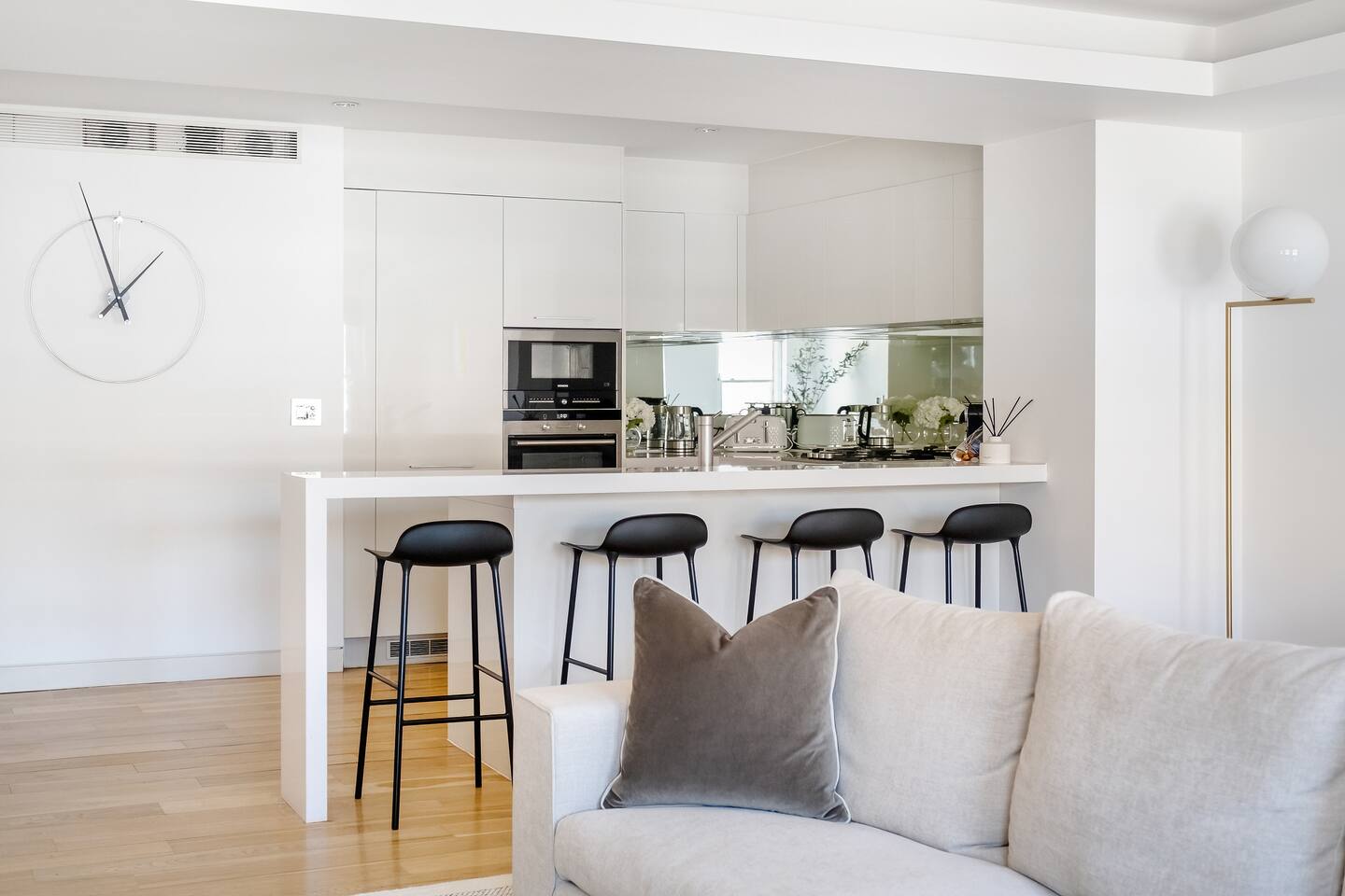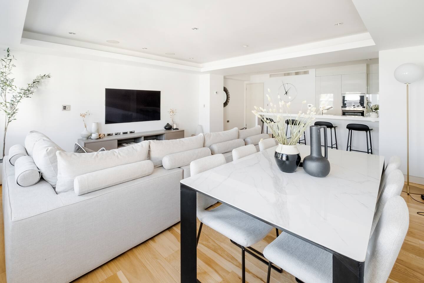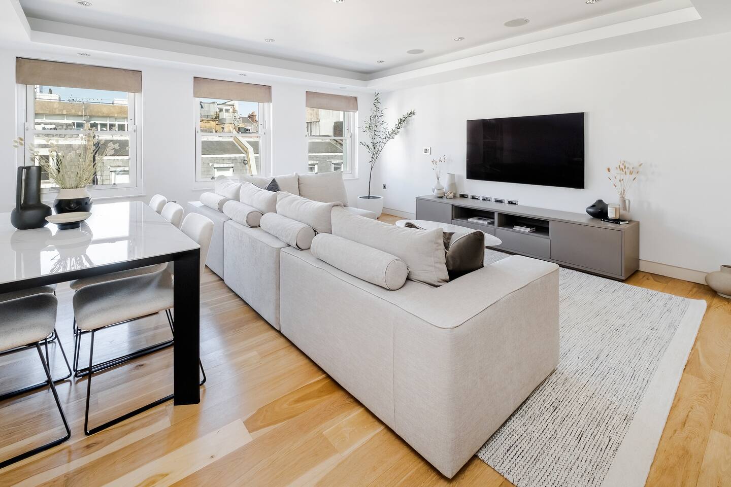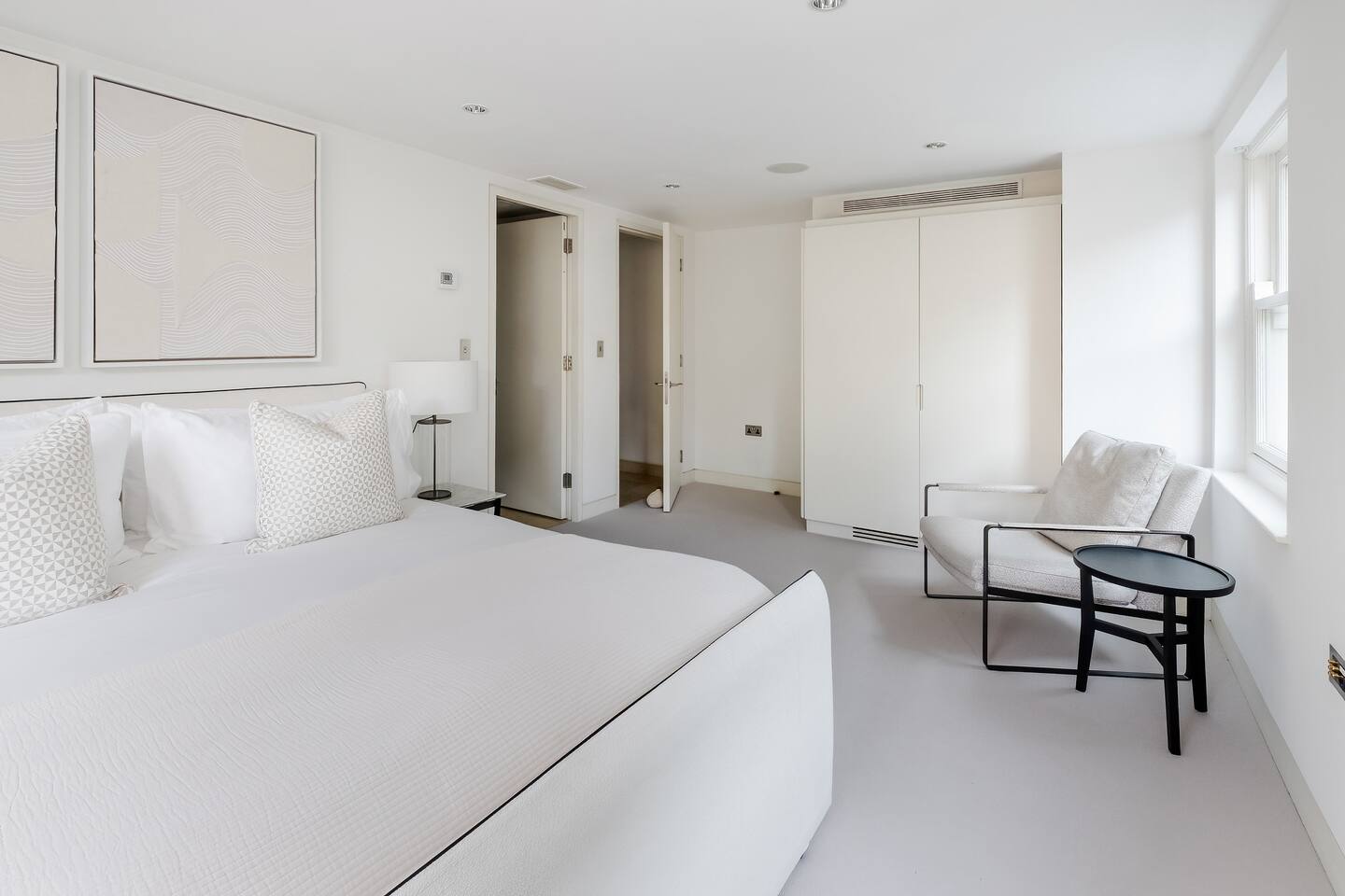 ✨ Luxury Family-Friendly Mayfair Home with Premium Amenities Welcome to your Mayfair retreat—a spacious, single-level residence designed for families, groups, and business travellers seeking comfort, style, and true hotel-quality convenience. Thoughtfully furnished and fully equipped, this home blends contemporary design with practical amenities, creating a serene base for working, relaxing, and exploring Central London. 🛏️ 3 Elegant Bedroom Suites -Three generously sized bedrooms, each featuring Super King beds (180×200cm), hotel-quality linens, full-length mirrors, and ample built-in wardrobes. -Two bedrooms include private en-suite bathrooms with walk-in rainfall showers; the third enjoys an adjacent shower/tub combo, ideal for families with children. -Central AC and premium furnishings ensure year-round comfort. -Extensive family amenities—including a crib, high chair, baby bath, toys, children’s tableware, and safety items—make travelling with kids effortless. 🚿 3 Modern Bathrooms -Enjoy spa-like relaxation in three beautifully designed bathrooms. -Stocked with luxury Aesop toiletries and soft, hotel-quality towels. -Features include two walk-in rainfall showers and a versatile bathtub/shower combo. 🎬 Stylish Lounge for Movie Nights -The spacious living room offers a warm, inviting space to unwind. -Movie nights are elevated with a 65-inch 8K Smart TV, premium sound system, Netflix, Disney+, and Amazon Prime. -A plush six-seater sofa, blackout curtains, and ambient lighting create the perfect cinematic setting. 🍽️ Fully Equipped Chef’s Kitchen -A modern kitchen designed for easy cooking and family dining. -High-end appliances include a Miele stove, oven, dishwasher, blender, rice maker, trash compactor, and more. -Stocked with cookware, oils, spices, children’s dining sets, and an espresso machine with complimentary coffee pods for your morning start. 💼 Ideal for Work or Long Stays -Stay productive with fast Wi-Fi (154 Mbps), Ethernet connection, and Pocket Wi-Fi for remote work on the go. 🏡 Private, Single-Level Living -Enjoy total privacy with your own floor and private entrance. -Step-free access and elevator convenience—perfect for strollers, luggage, and accessibility needs. -Quiet residential building offering peaceful nights in the heart of the city. 🧺 Extra Comforts -In-unit washer and dryer make extended stays easy. -Premium household essentials and hotel-level touches throughout. -Mid-stay cleaning available upon request. 📍 Prime Mayfair Location -Located in one of London’s most prestigious neighbourhoods, this home is moments from: -Hyde Park, Green Park, and world-famous Mayfair restaurants -Luxury shopping on Bond Street and Regent Street -The Royal Academy of Arts & Berkeley Square -Excellent transport links, including Green Park, Bond Street, and Oxford Circus stations -Whether you want fine dining, designer boutiques, or peaceful park walks, everything is on your doorstep. 🌟 Why Guests Love It -Hotel-quality interiors with a family-friendly layout -Exceptional tech and entertainment options -Thoughtful amenities designed for comfort, convenience, and longer stays -A peaceful, private setting with unbeatable access to Central London