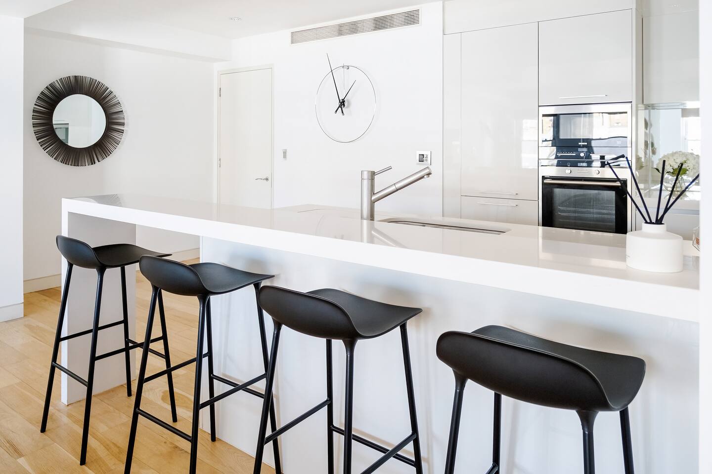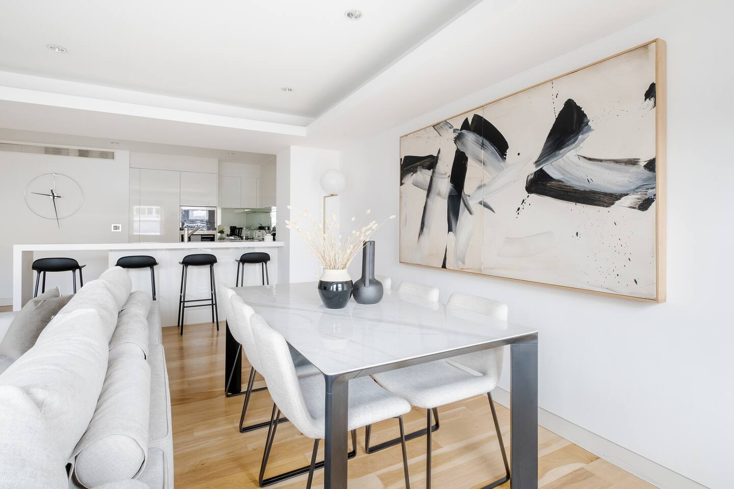 To ensure your stay is as comfortable as possible, please note the following: The home is located in a quiet residential building, ensuring peaceful nights in the heart of the city. We ask that you be respectful of our neighbors. An in-unit washer and dryer are available for your convenience, making longer stays simple. Mid-stay cleaning services can be arranged upon request for an additional fee, perfect for refreshing the space during extended visits.
