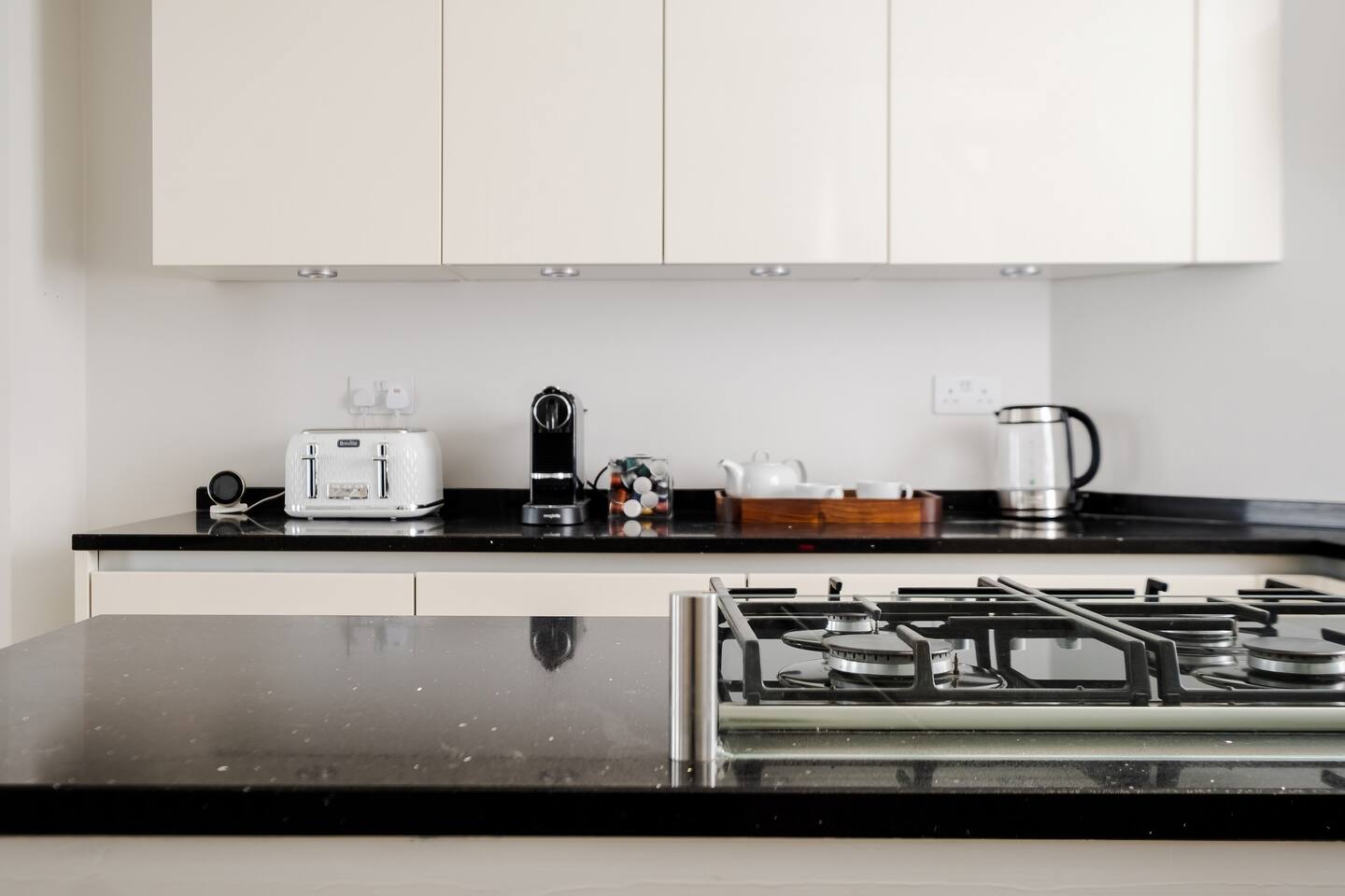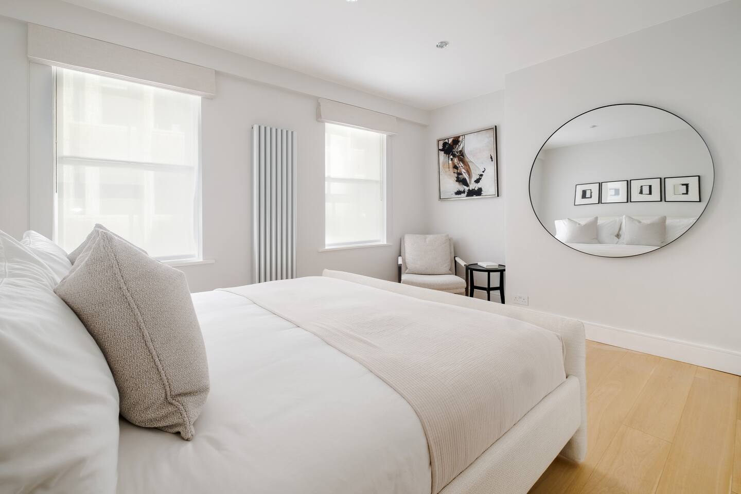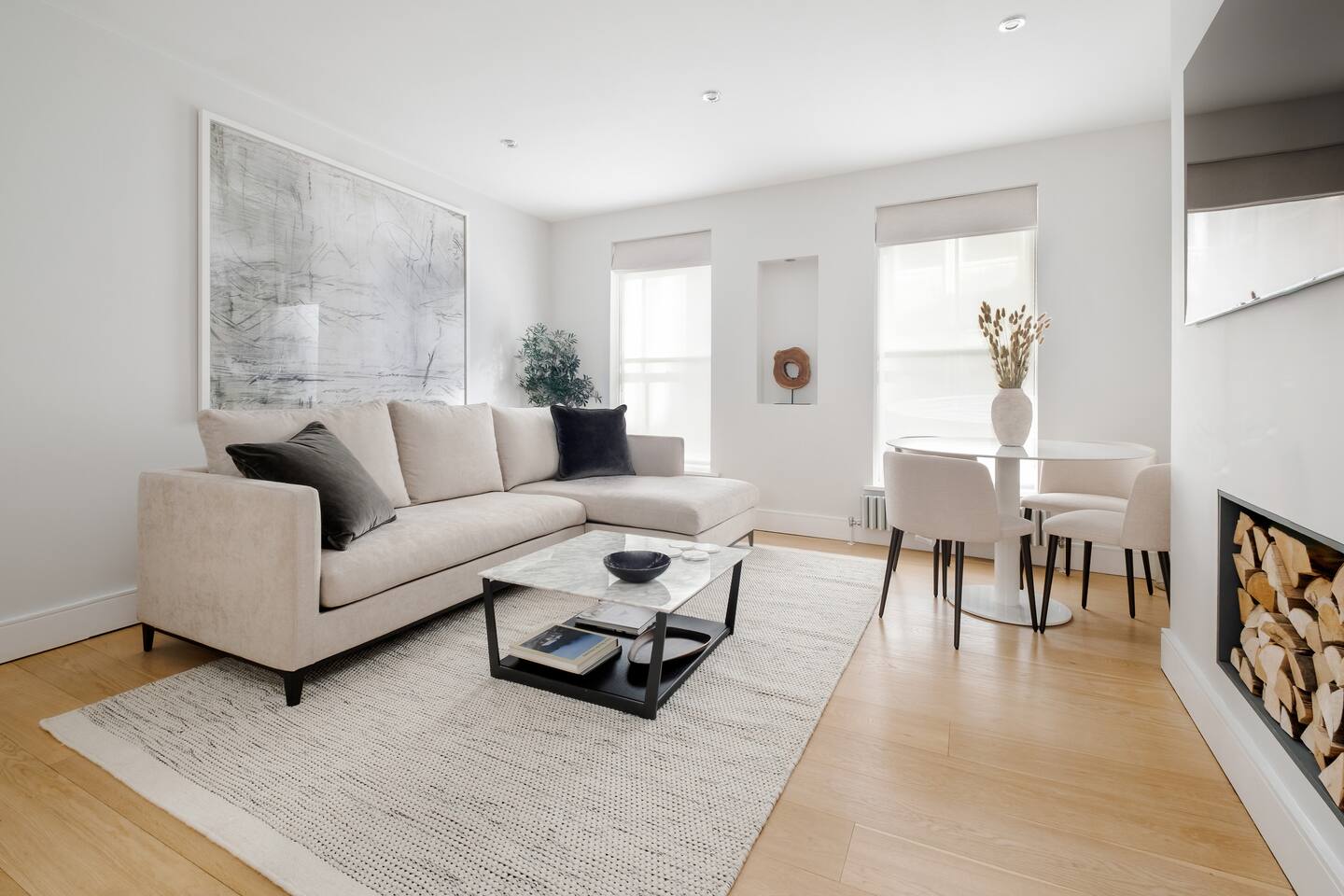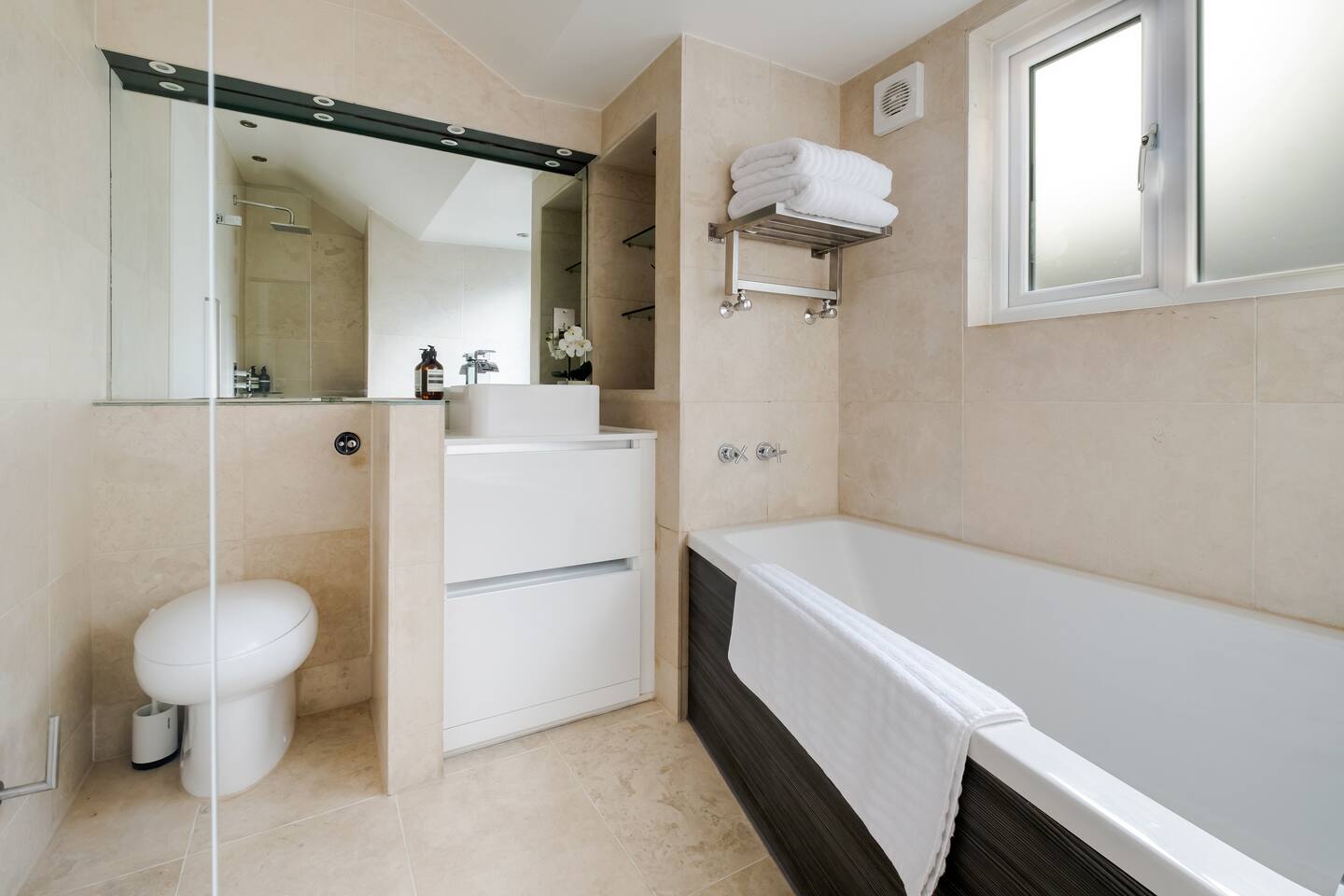 Welcome to your elegant London retreat—a stylish multi-level townhouse offering refined comfort, privacy, and exceptional convenience in one of the city’s most iconic locations. Perfect for families, couples, groups, and business travellers, this beautifully curated home blends thoughtful design with premium amenities just moments from London’s most famous landmarks. 🛏️ Bedrooms & Bathrooms -Both bedrooms are generously sized and set across separate floors for enhanced privacy -Super King beds (180x200cm) dressed in 500-thread-count Egyptian cotton linens -Built-in wardrobes, full-length mirrors, and premium furnishings -Master suite with en-suite bathroom and spacious walk-in shower -Second bedroom with adjoining bathroom featuring a bathtub/shower combo—ideal for families -All bathrooms stocked with luxury Aesop toiletries, plush towels, and quality essentials 🍽️ Modern, Fully Equipped Kitchen -Prepare meals with ease in a sleek, well-appointed kitchen featuring high-end appliances -Cookware, dinnerware, oils, spices, and baking essentials included -Complimentary coffee pods for relaxed mornings at home -Designed for everything from quick breakfasts to family dinners 🛋️ Stylish Living & Dining Space -Contemporary living area perfect for relaxing after a day sightseeing -65-inch 8K TV with Netflix, Disney+, Amazon Prime & Apple TV -Comfortable four-seater sofa and blackout curtains for cosy movie nights -Elegant marble dining table seating four 💼 Ideal for Business Travellers -High-speed Wi-Fi throughout the home -In-house safe for valuables and work equipment -Quiet layout well suited for remote work 👶 Family-First Convenience -Fully equipped for travelling with children, including: -Travel crib, high chair, and baby bath -Children’s bowls, cups, and cutlery -Stair gates, safety guards, and child-friendly layouts -Families can also request babysitter recommendations for added peace of mind 🌬️ Comfort & Practical Amenities -Portable air-conditioning units available for warmer days -Central heating for year-round comfort -In-unit washer and dryer -Private townhouse entrance for added privacy 📍 Unbeatable Central Location -Just steps from Leicester Square, Trafalgar Square, Covent Garden, and the West End theatres -Walk to the National Gallery, Soho dining, Chinatown, and iconic London landmarks -Excellent transport links via nearby Underground stations for effortless city exploration 🧳 Arrival & Parking Information -Easy self check-in with clear instructions provided before arrival -Paid parking garages available nearby (no on-site parking) ⚠️ Important Information -The townhouse spans three floors accessed by internal staircases; may not be suitable for guests with mobility challenges 🌟 A refined, family-ready London home offering space, comfort, and an unbeatable location at the very heart of the capital.